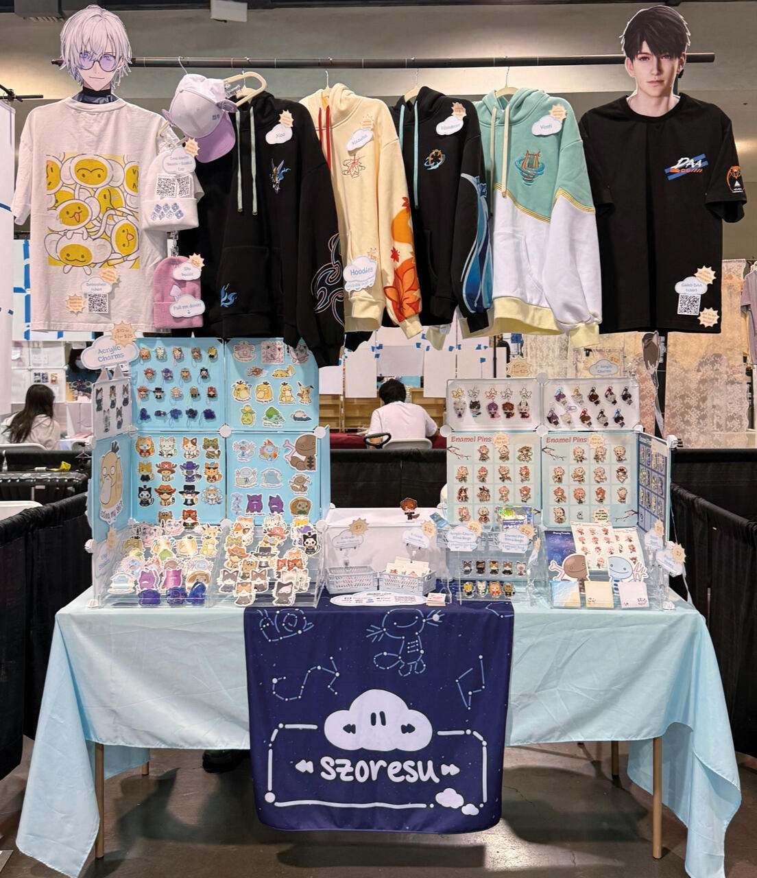 Hi, I'm Reba, better known as szoresu! My main goal is to share my love for my favorite characters and pieces of media through my art! I love the expressiveness and creative freedom of chibi designs, so I design and produce a lot of cute, colorful chibi charms, enamel pins, and stickers. I also really love the Asian streetwear aesthetic, so when I design apparel, one of my main design principles is to try to strike the balance between designs that are immediately recognizable to fans but are also subtle and interesting enough to be standalone, streetwear-style pieces. I find it so meaningful that my art can be a bridge that connects me to others that share the same interests, and it's my sincere hope that my art can bring people joy!